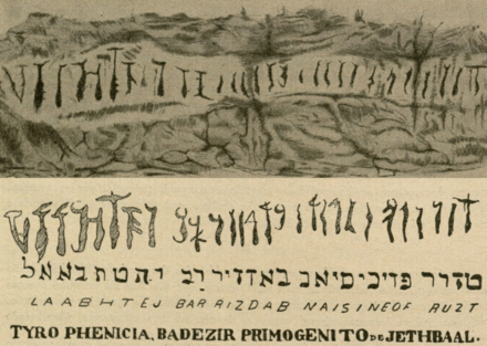 Son père fut également roi de Tyr sous le nom de JethBaal ou EthBaal ou encore Ithobaal 1er. Cependant, le terme « phénicien » est grec et n'est pas utilisé par les Phéniciens eux-mêmes (ils utilisaient Kana`nim, c'est-à-dire « Canaanites »), ce qui pourrait indiquer une contrefaçon. Cette inscription semble n'être découverte qu'au début du XIXe siècle, à une période durant laquelle certains étudiants se passionnaient pour l'antiquité. On sait en effet désormais que les nombreuses prétendues preuves d'une présence phénicienne en Amérique sont des faux élaborés au XIXe siècle.